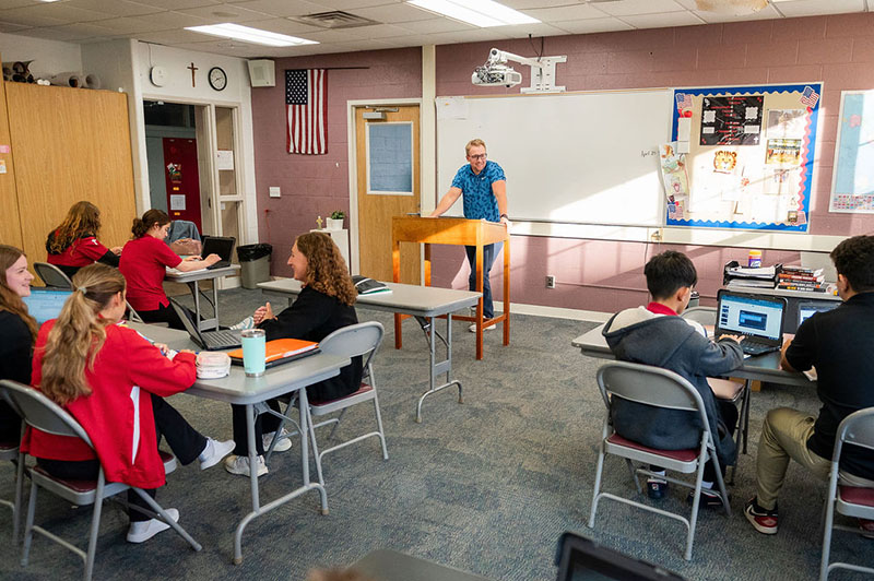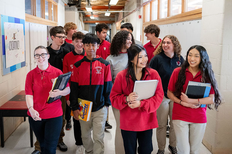 St. Philip High School students experience a rigorous, faith-centered academic program designed to prepare them for college, career, and life. Our highly qualified faculty guide students through a wide variety of courses in math, science, language arts, social studies, and theology, with technology fully integrated across subjects. Students deepen their faith through prayer, Mass and service, while participating in athletics, clubs, and leadership opportunities that build confidence, teamwork, and independence.